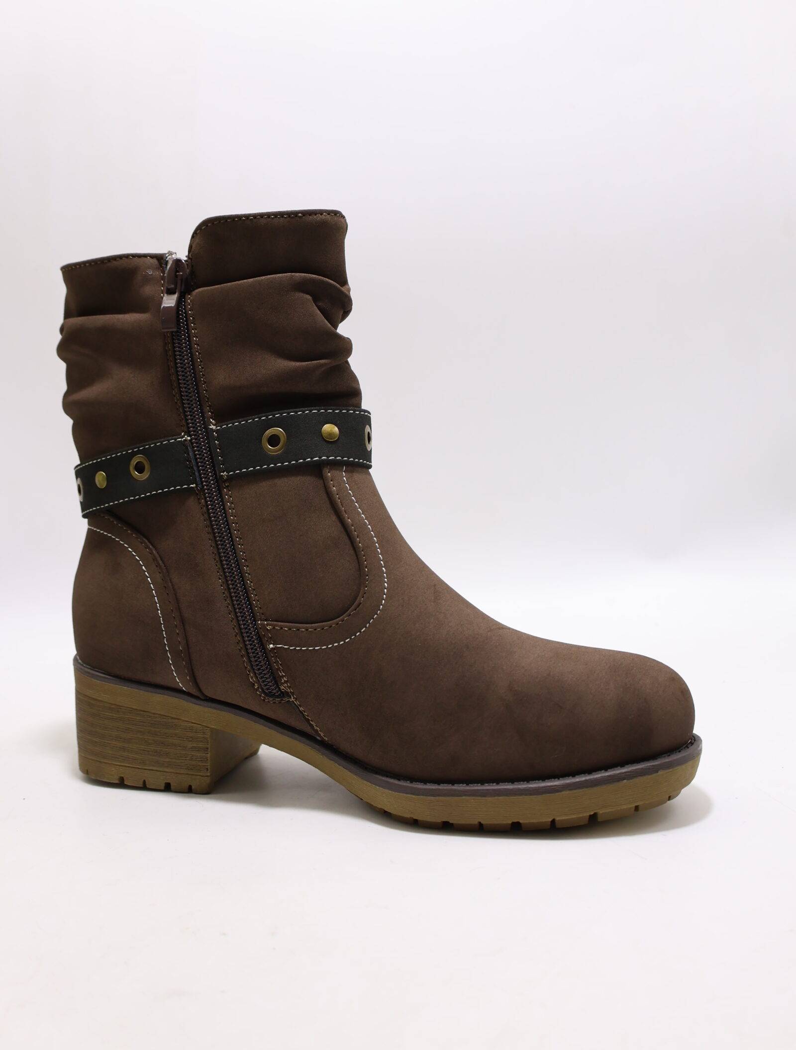 Botki damskie ocieplane na obcasie (36-41) A-917 BROWN