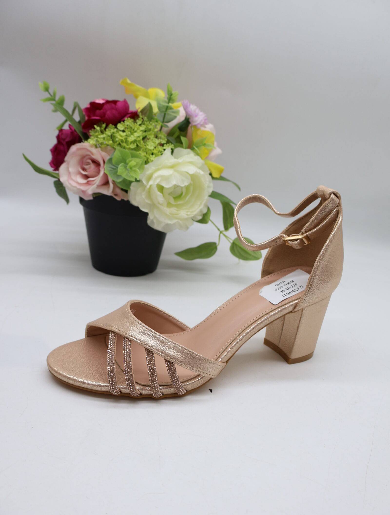 Czółenki damskie na obcasie (36-41) 1808-1 GOLD