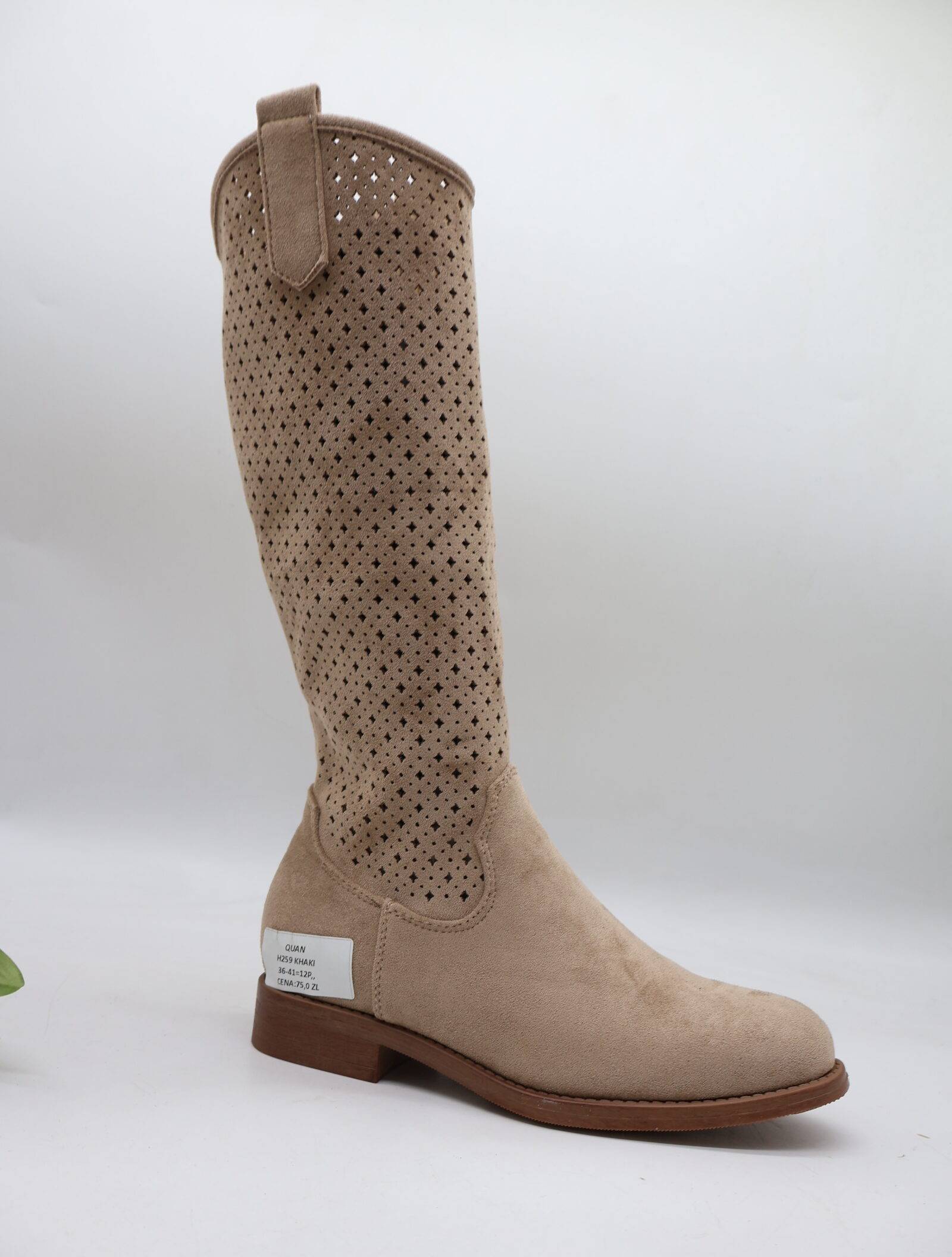 Kozaki damskie na płaskim (36-41) H259 KHAKI