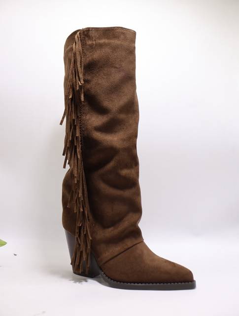 Kozaki damskie ocieplane na obcasie (36-41) 9638 BROWN