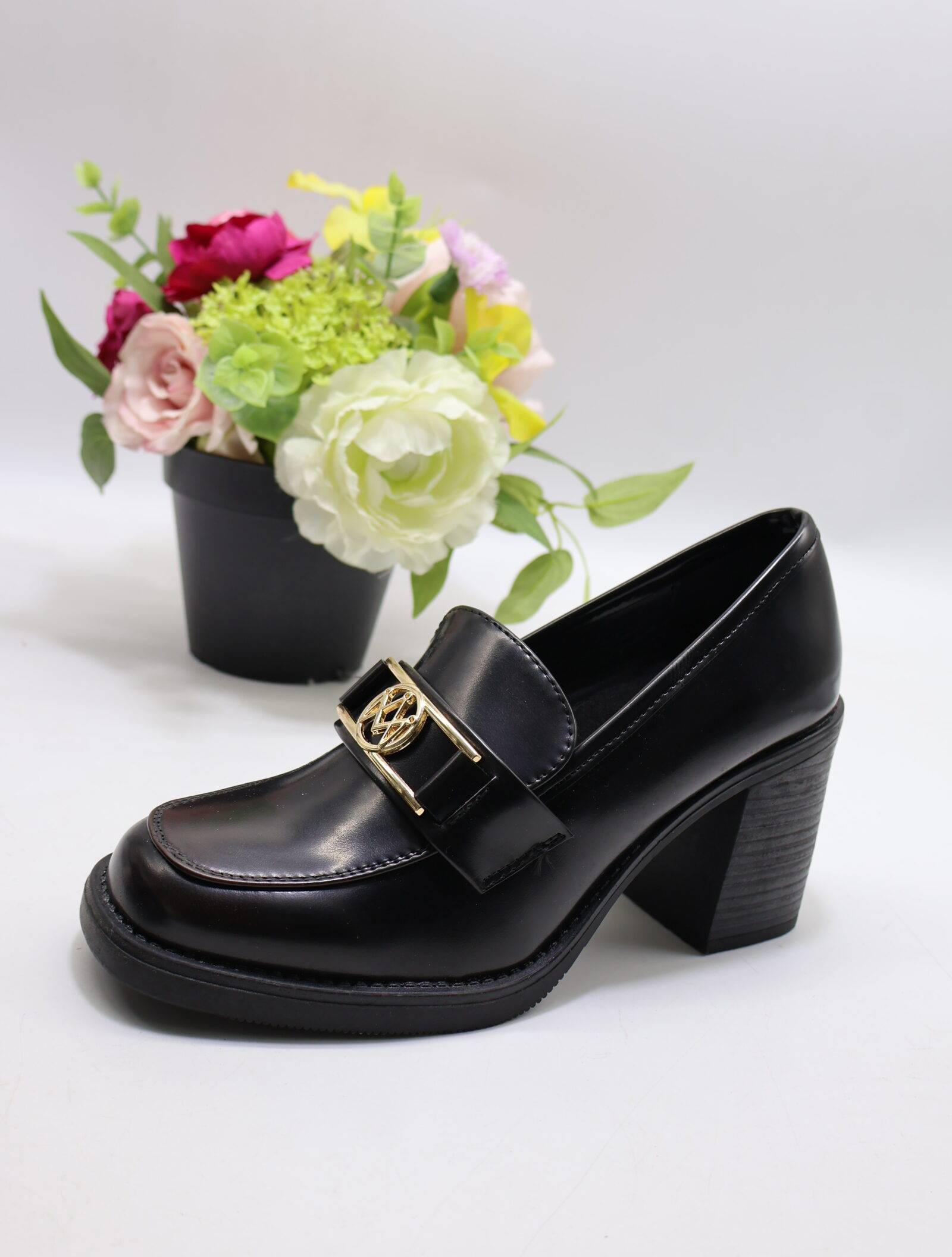 Mokasyny damskie na obcasie (36-41) ANWL-30-1 BLACK