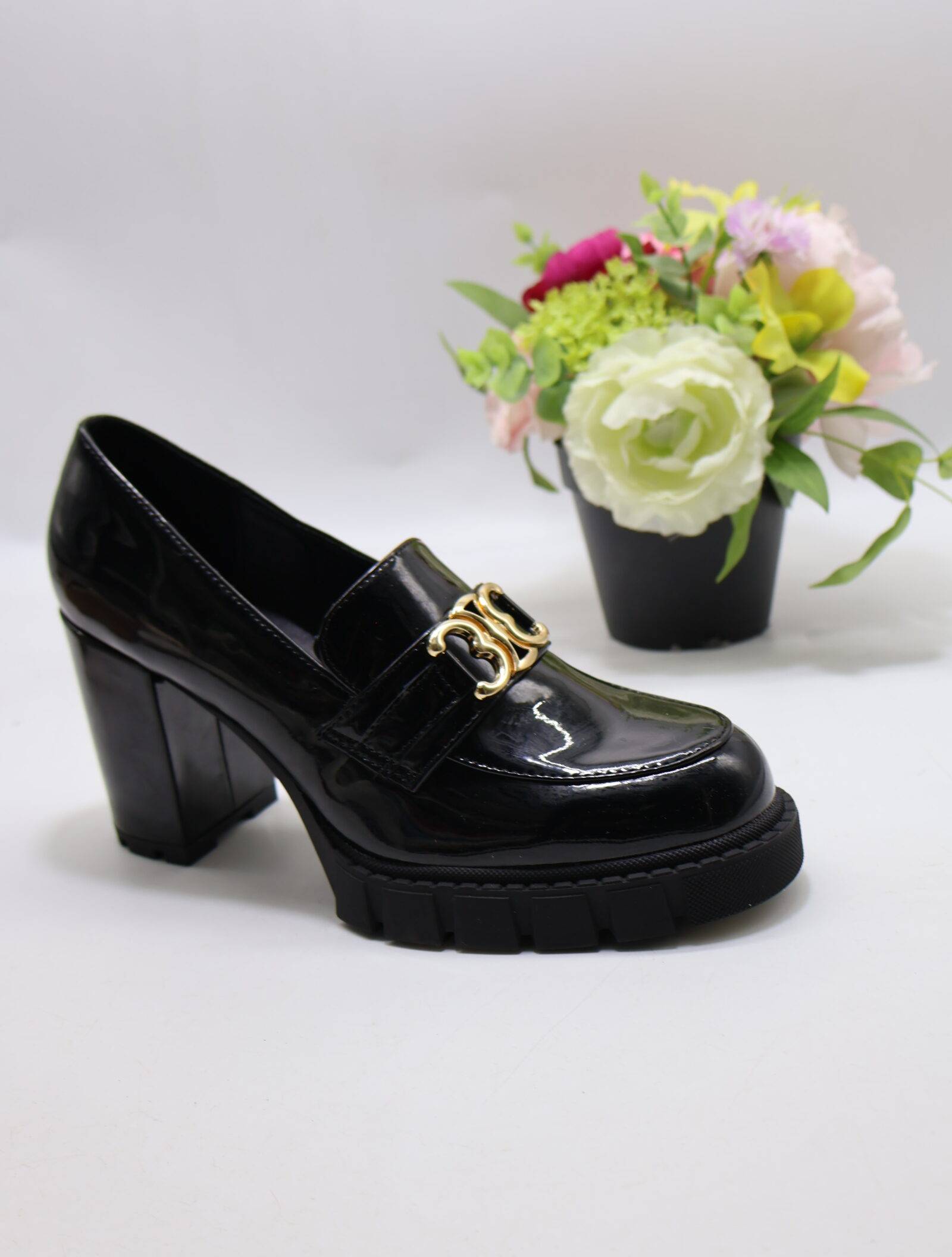 Mokasyny damskie na obcasie (36-41) YO-1530 BLACK