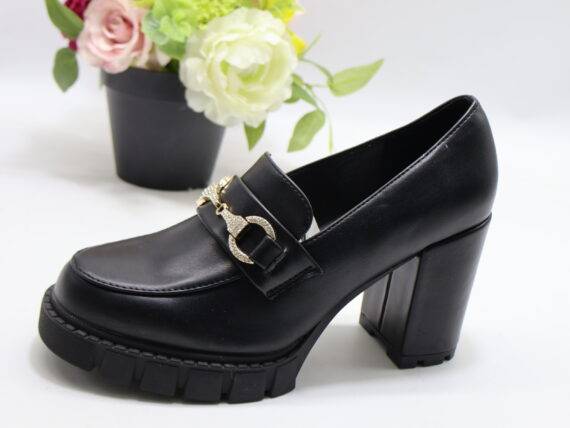 Mokasyny damskie na obcasie (36-41) T2396-1 BLACK