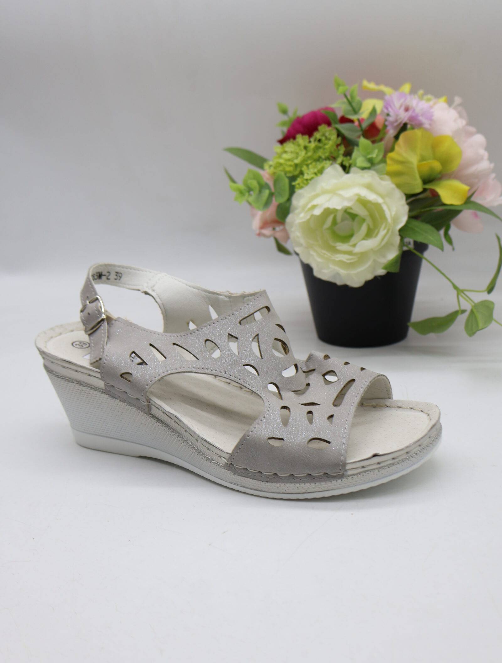Sandały damskie na koturnie (36-41) 7AA227 SILVER/SIL